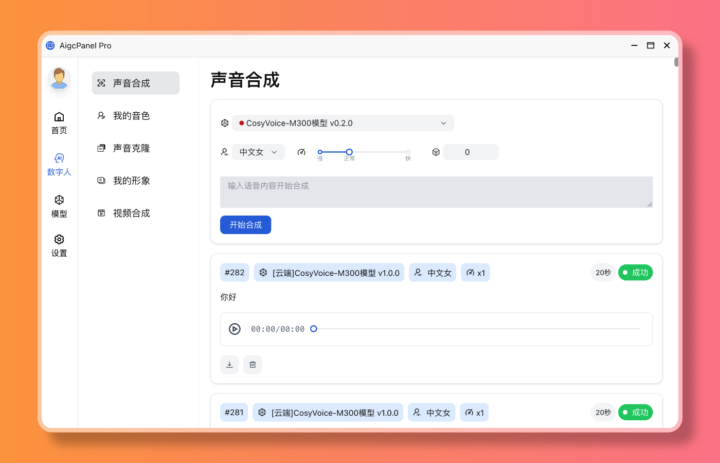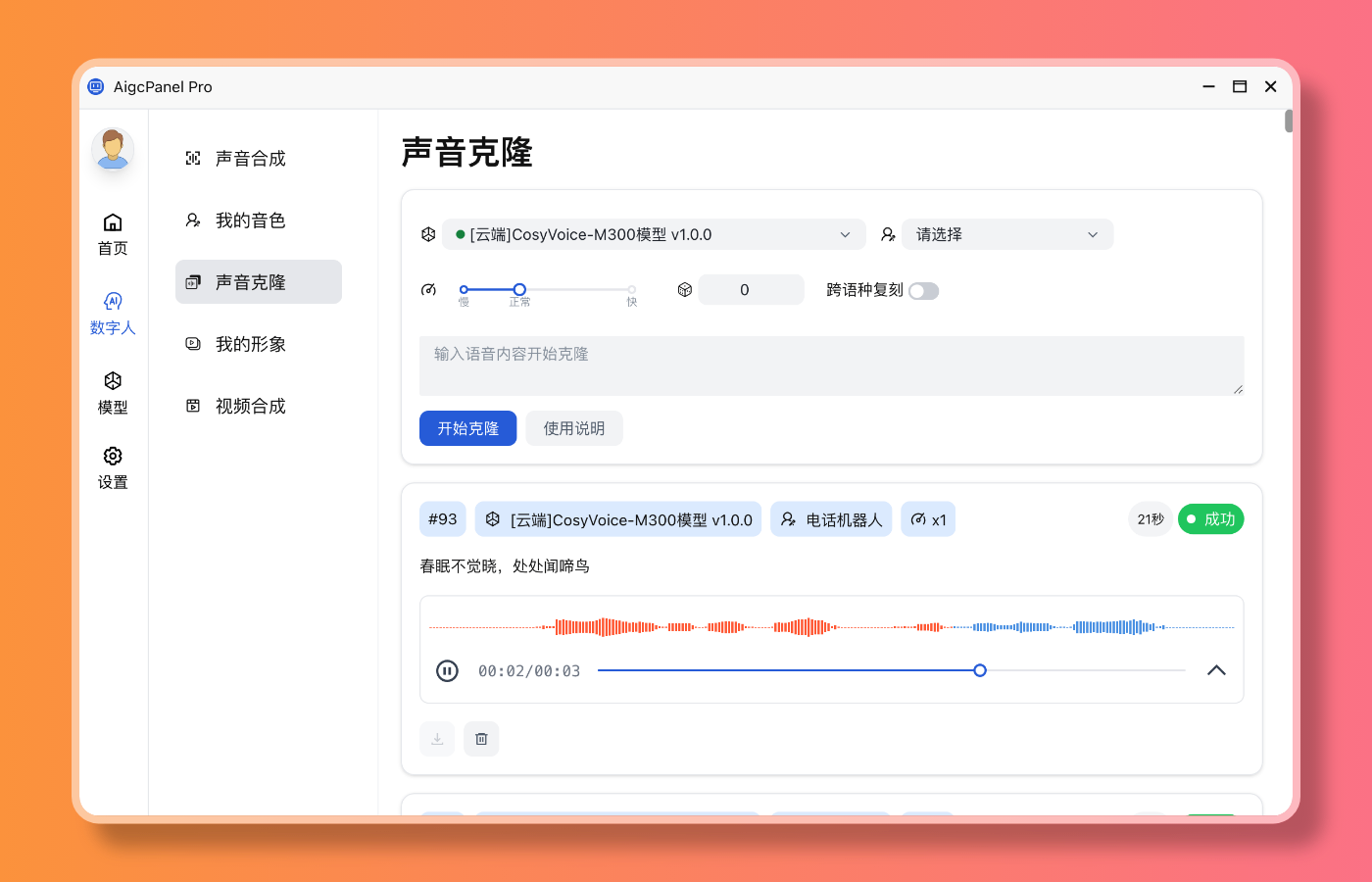 • 语音模型:CosyVoice-300M