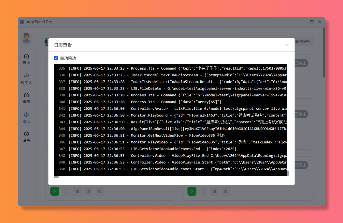 支持视频数字人合成,支持视频画面和声音换口型匹配支持语音合成、语音克隆,多种声音参数可设置支持多模型导入、一键启动、模型设置、模型日志查看支持国际化,支持简体中文、英语支持本地免费多种模型一键启动包。