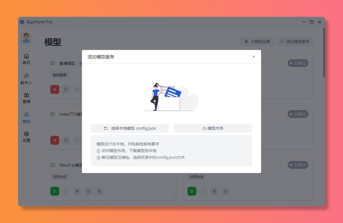 AigcPanel是一个简单易用的一站式AI数字人系统,小白也可使用。 支持智能直播、视频合成、声音合成、声音克隆,简化本地模型管理、一键导入和使用AI模型。