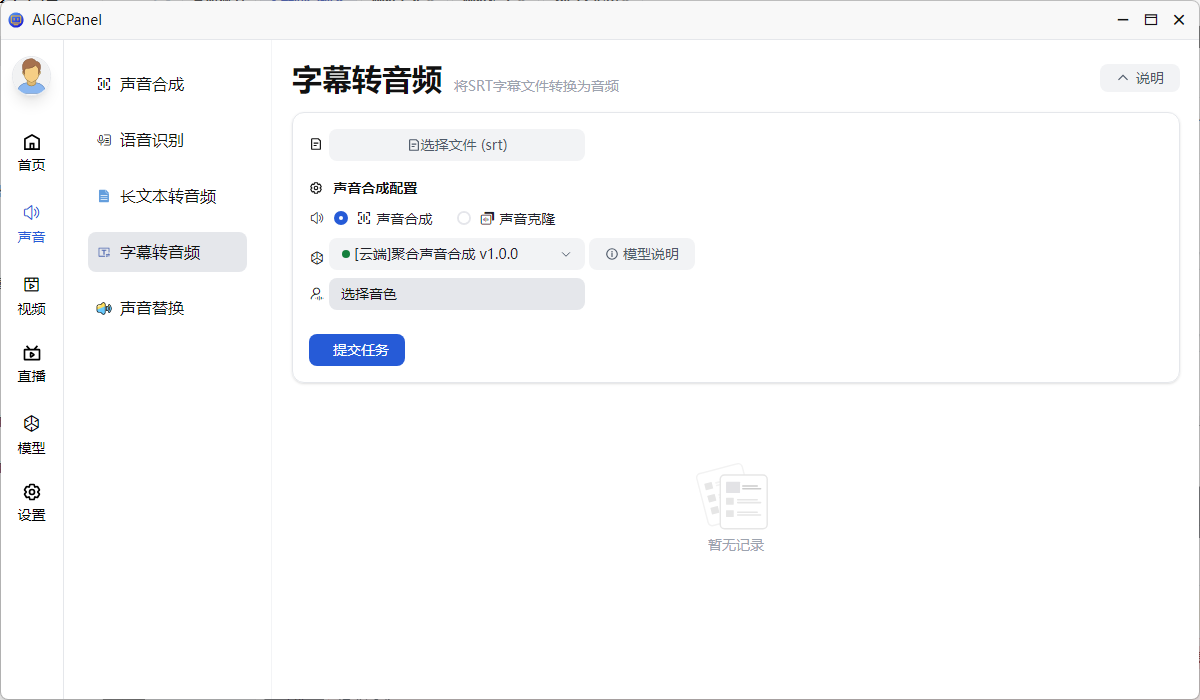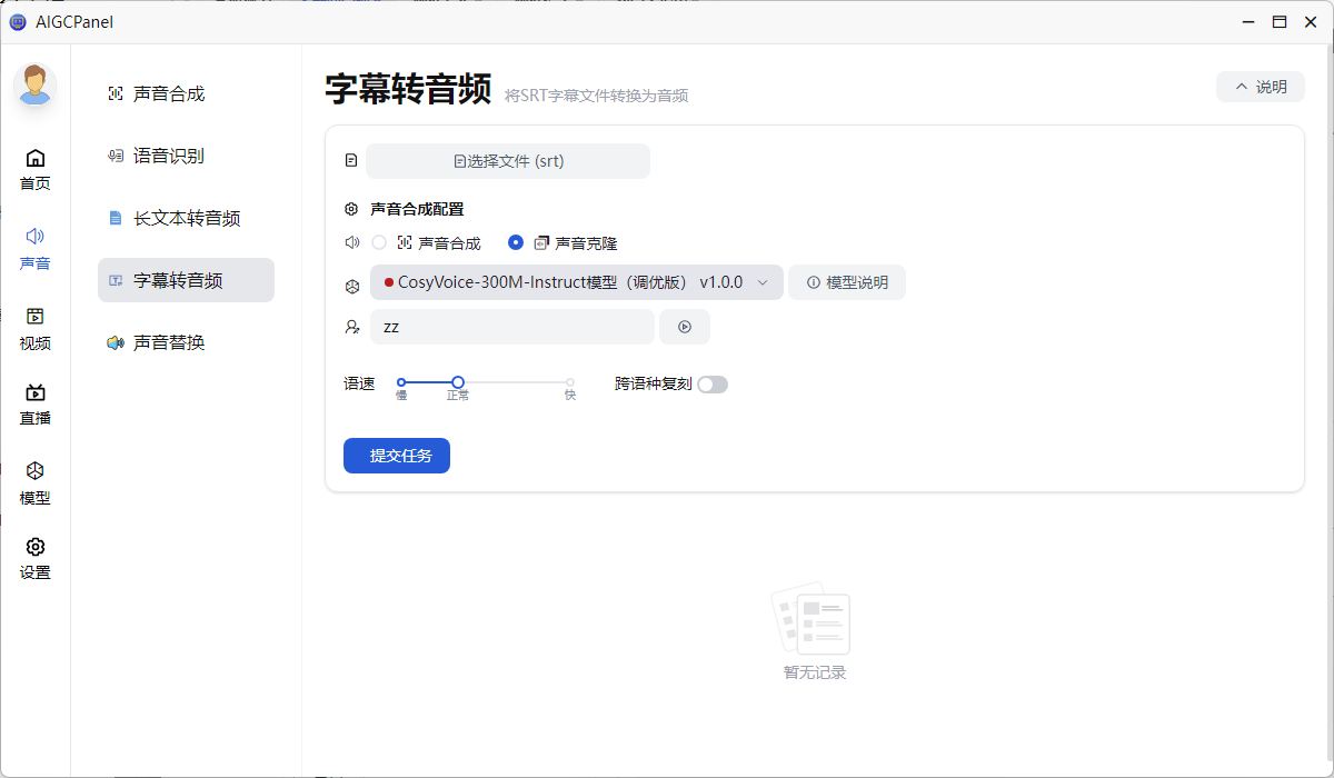新增:字幕转音频功能,支持 SRT 字幕文件转音频