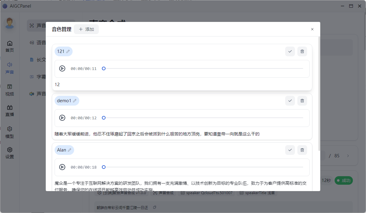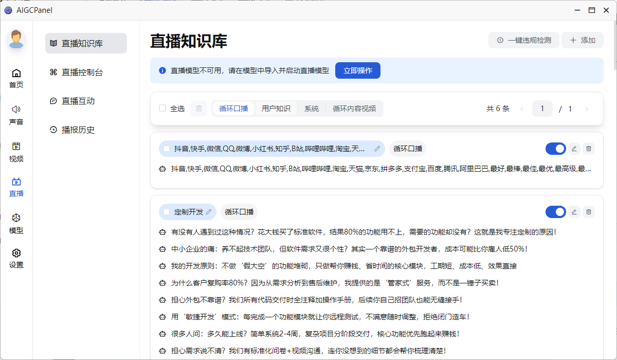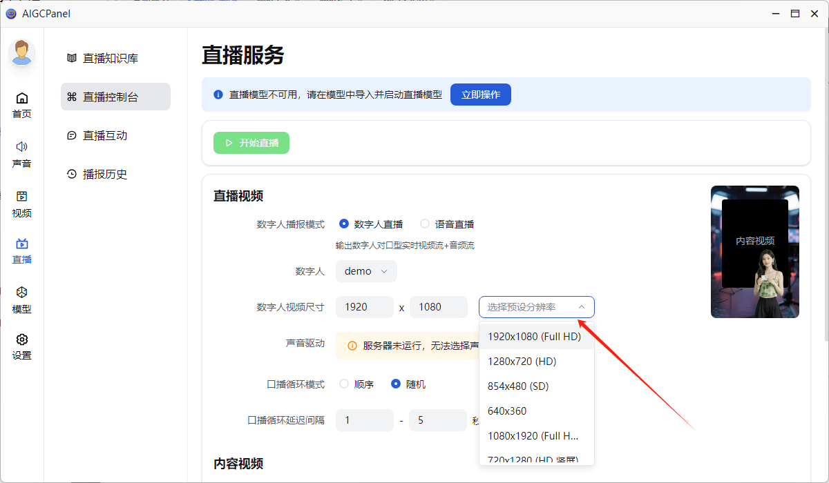 AigcPanel是一个简单易用的一站式免费开源AI数字人系统,小白也可使用。 支持智能直播、视频合成、声音合成、声音克隆、声音替换,简化本地模型管理、一键导入和使用AI模型。