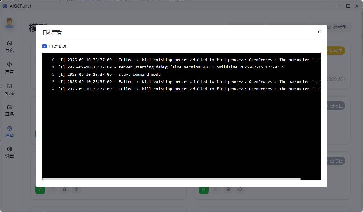 支持多模型导入、一键启动、模型设置、模型日志查看